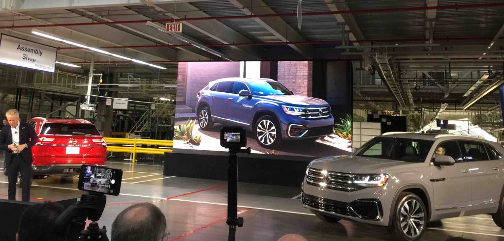 2020 Volkswagen Atlas Cross Sport Global Reveal Chattanooga, TN. Just a few days ago I traveled to Chattanooga, Tennesse to attend the Volkswagen global reveal of their new 2020 Atlas. The new atlas was presented directly in the inside of Volkswagen’s state-of-the-art factory in Chattanooga, Tennesse.  During the reveal, Scott Keogh, CEO of Volkswagen Group of America, explained the success of the previous 7-seater Atlas and talk to us about their new 5-seater Atlas Cross Sport, what is expected to increase sales and the previous success of the Atlas.